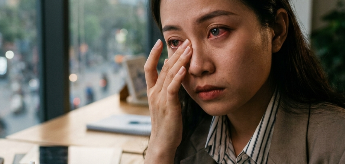 Nếu mắt bị đỏ, đau hoặc chảy nước mắt, bạn nên tháo lens ngay. Ngoài ra, nếu cảm thấy cộm kéo dài, bạn cũng cần kiểm tra lại.